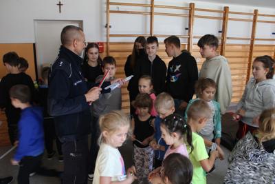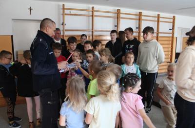 Spotkanie uczniów z funkcjonariuszami policji na temat bezpieczeństwa na drogach