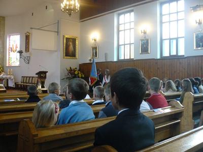 W dniu 01.09.2014r. Mszą Św. w kosciele parafialnym uroczyście rozpoczęliśmy rok szkolny 2014/2015. Do kościoła wyruszyliśmy spod budynku szkoły. Na czele pochodu szedł poczet sztandarowy, dalej uczniowie i nauczyciele. W kościele czekał już na nas proboszcz parafii w Szarowoli ks. kan. Józef Bednarz. Po Mszy Św. wróciliśmy do szkoły, gdzie wysłuchaliśmy krótkiego montażu słowno-muzycznego w wykonaniu naszych kolegów i koleżanek. Głos zabrała pani dyrektor Anna Romańczuk, która wszystkim uczniom w nowym roku szkolnym złożyła życzenia samych piątek i szóstek na świadectwach. Następnie uczniowie rozeszli się do klas na spotkanie ze swoimi wychowawcami.