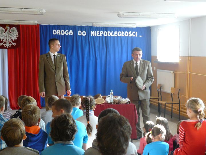 W dniu 6 listopada w naszej szkole gościli pracownicy Nadleśnictwa Tomaszów Lub. Panowie w bardzo ciekawy sposób opowiadali naszym uczniom o pracy leśniczego, o gatunkach roślin i zwierząt żyjących w lasach. Dzięki takiemu spotkaniu uczniowie dowiedzieli się wielu ciekawych informacji.