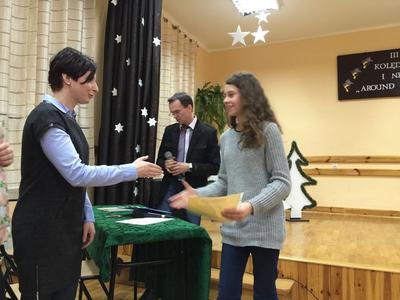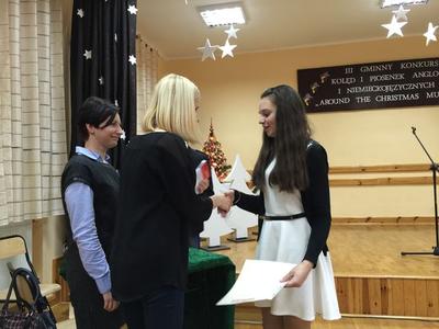 29 stycznia w Łaszczówce odbył się III Gminny Konkurs Kolęd i Piosenek Anglo i Niemieckojęzycznych. Wzięły w nim udział dwie uczennice z naszego gimnazjum: Joanna Koczułap i Elżbieta Żuk. Śpiewaly one piosenki świąteczne w języku angielskim. Asia otrzymała wyróżnienie. Do konkursu przygotowała uczennice