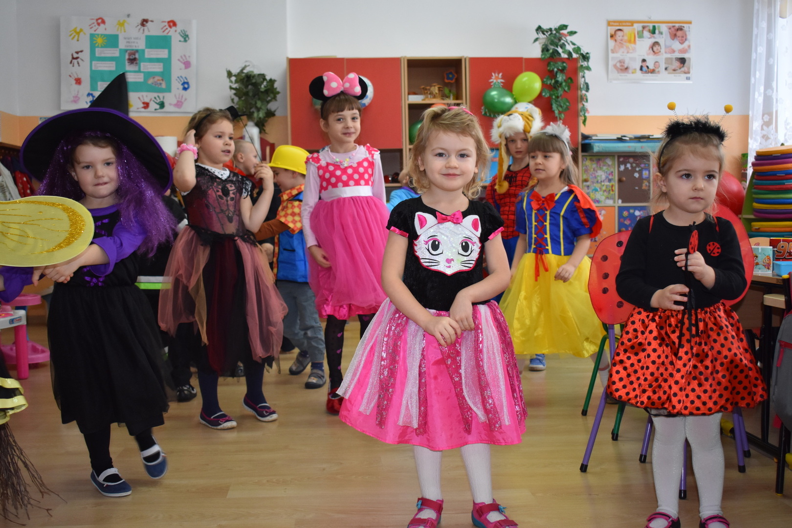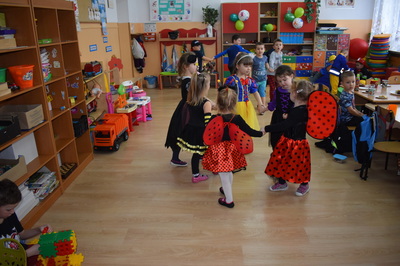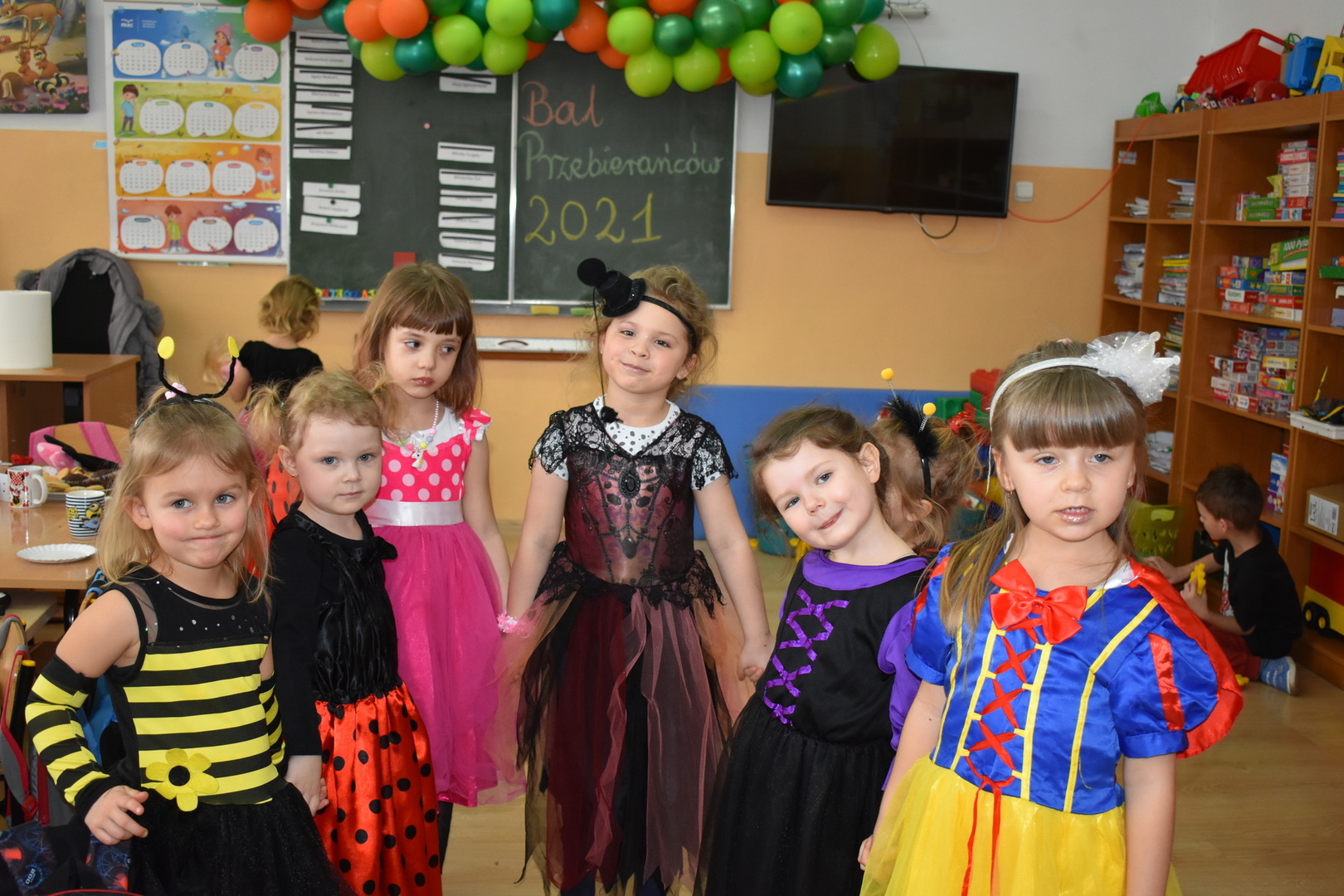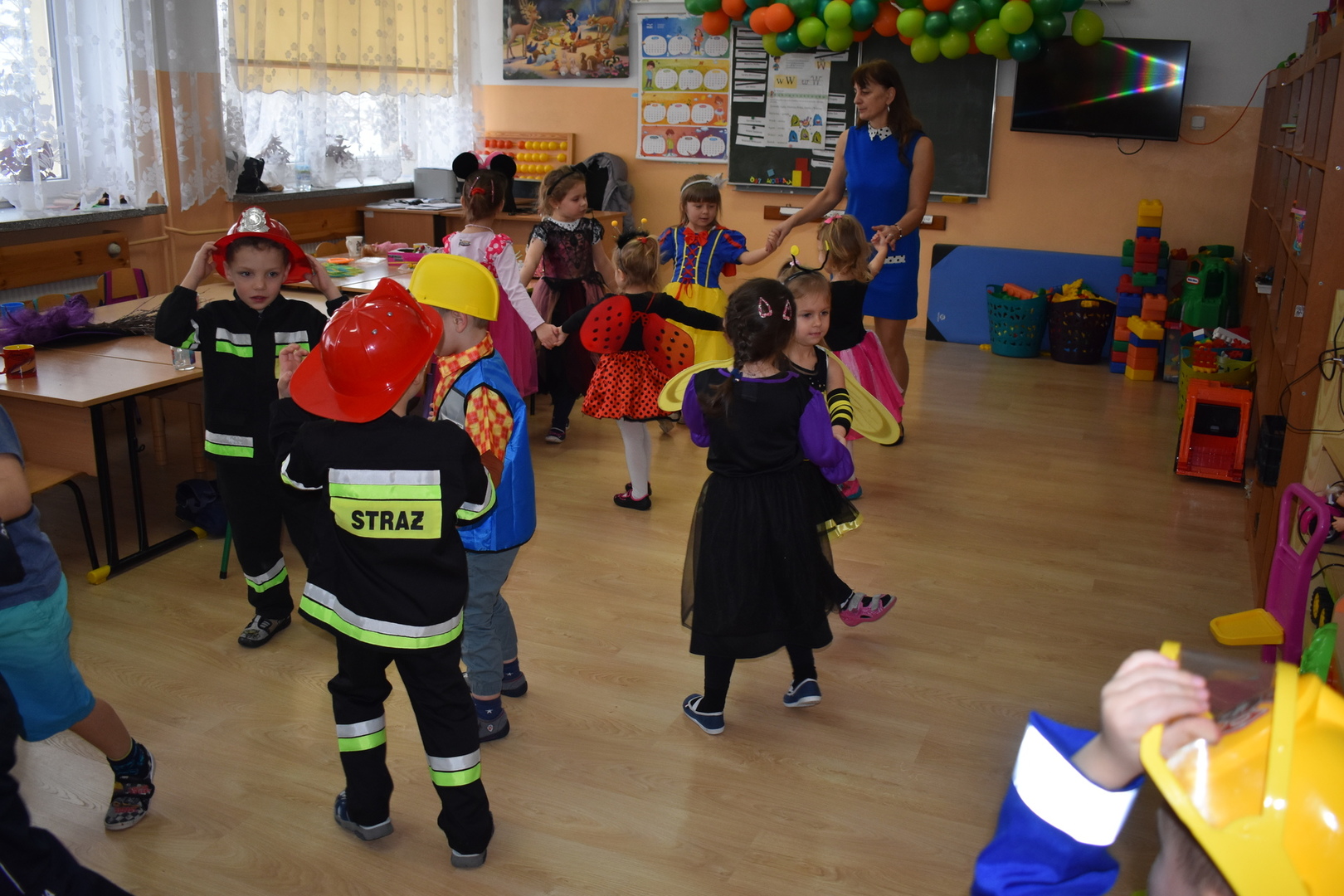 Tego dnia już od rana w przedszkolu pojawiły się kolorowe postacie. Dzieci przebrane były za bohaterów znanych bajek, w sali można było spotkać: wróżki, królewny, księżniczki, biedronki, pszczółki, policjantów, strażaków, budowniczych, Spider-Mana i Zorro. Rozpoznać dzieci było bardzo trudno. Na sali wszyscy bawili się wesoło, uśmiech nie znikał z twarzy mimo chwilowego zmęczenia. Kolejną atrakcją był słodki poczęstunek przygotowany przez rodziców. Wspólna zabawa przyniosła wiele radości naszym wychowankom co było głównym celem tego balu.
