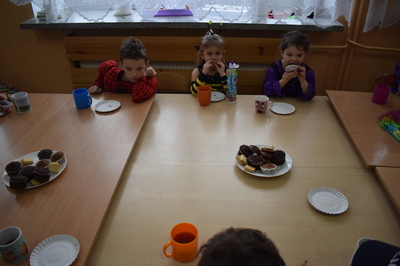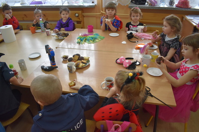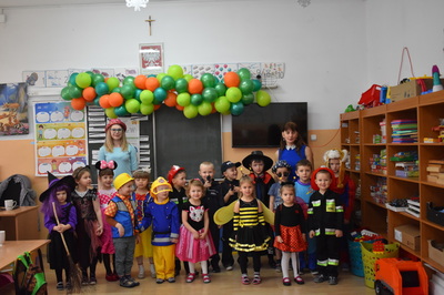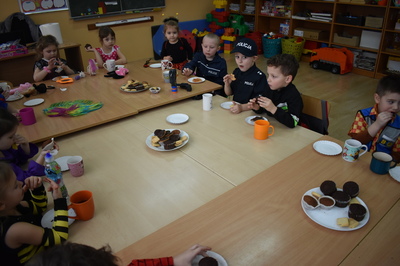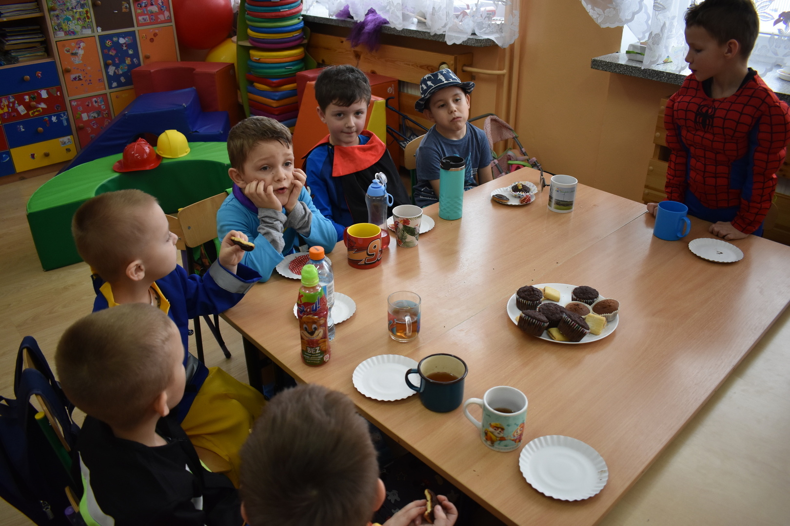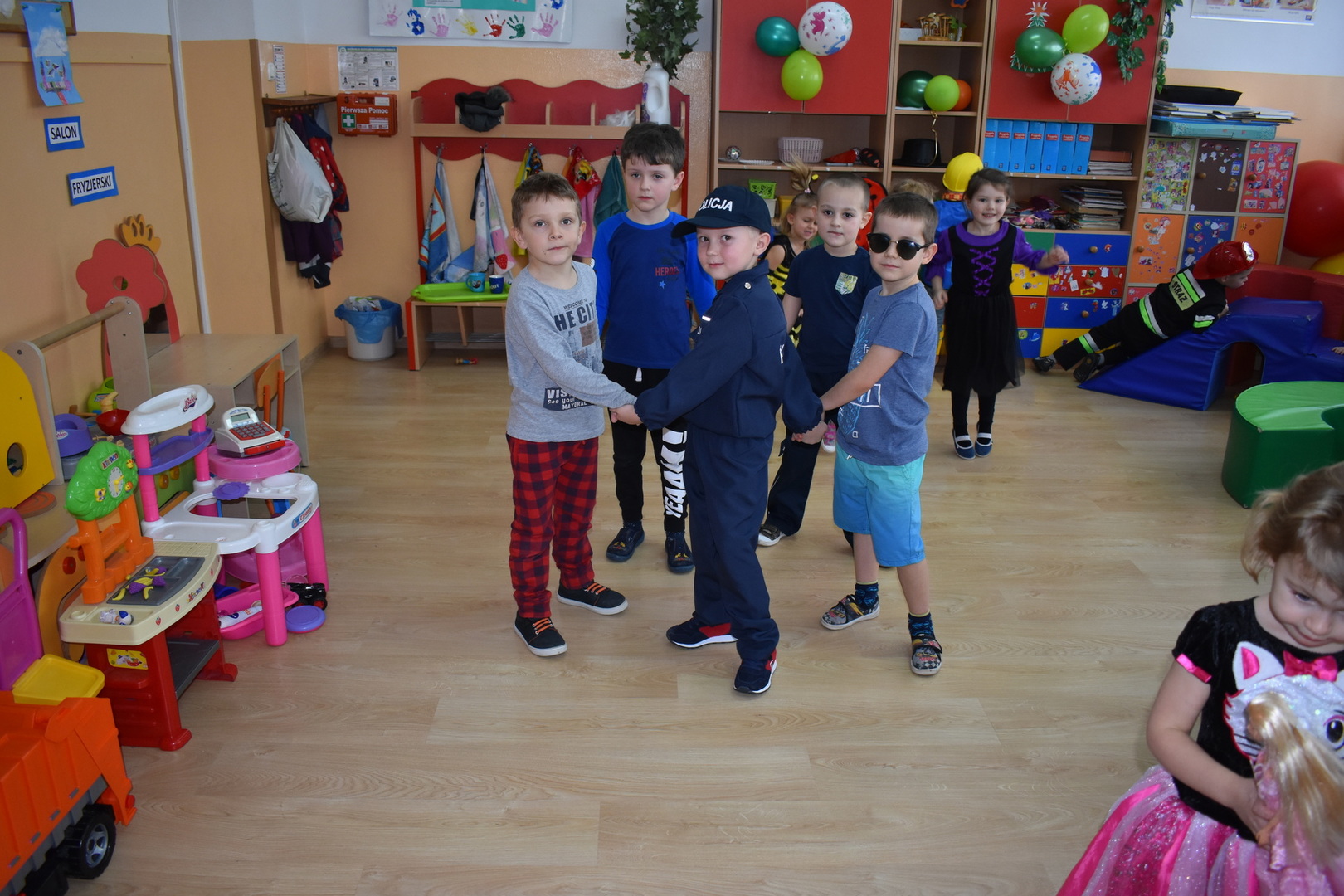 Tego dnia już od rana w przedszkolu pojawiły się kolorowe postacie. Dzieci przebrane były za bohaterów znanych bajek, w sali można było spotkać: wróżki, królewny, księżniczki, biedronki, pszczółki, policjantów, strażaków, budowniczych, Spider-Mana i Zorro. Rozpoznać dzieci było bardzo trudno. Na sali wszyscy bawili się wesoło, uśmiech nie znikał z twarzy mimo chwilowego zmęczenia. Kolejną atrakcją był słodki poczęstunek przygotowany przez rodziców. Wspólna zabawa przyniosła wiele radości naszym wychowankom co było głównym celem tego balu.