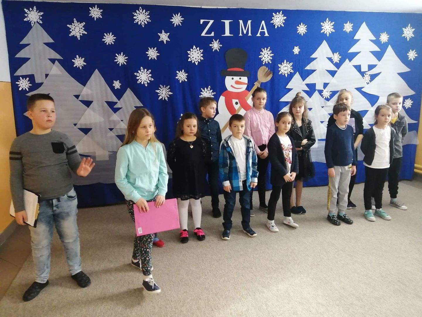 Zima to malownicza pora roku. Lubią ją wszystkie dzieci. Wiąże się z nią wiele zabaw na śniegu i lodzie . Aby w pełni cieszyć się urokami zimy musimy pamiętać o bezpieczeństwie w trakcie zabaw. Uczniowie klas 1-3 wraz z wychowawcami przygotowali apel na temat bezpieczeństwa i przedstawili go przedszkolakom. Zaprezentowali piosenki i wiersze o tematyce zimowej . Zapoznali przedszkolaków z kodeksem postępowania podczas zabaw zimowych oraz przypomnieli o niebezpieczeństwach, jakie grożą im podczas zabaw w nieodpowiednich miejscach. Mamy nadzieję, że udzielone rady wszyscy zapamiętają.