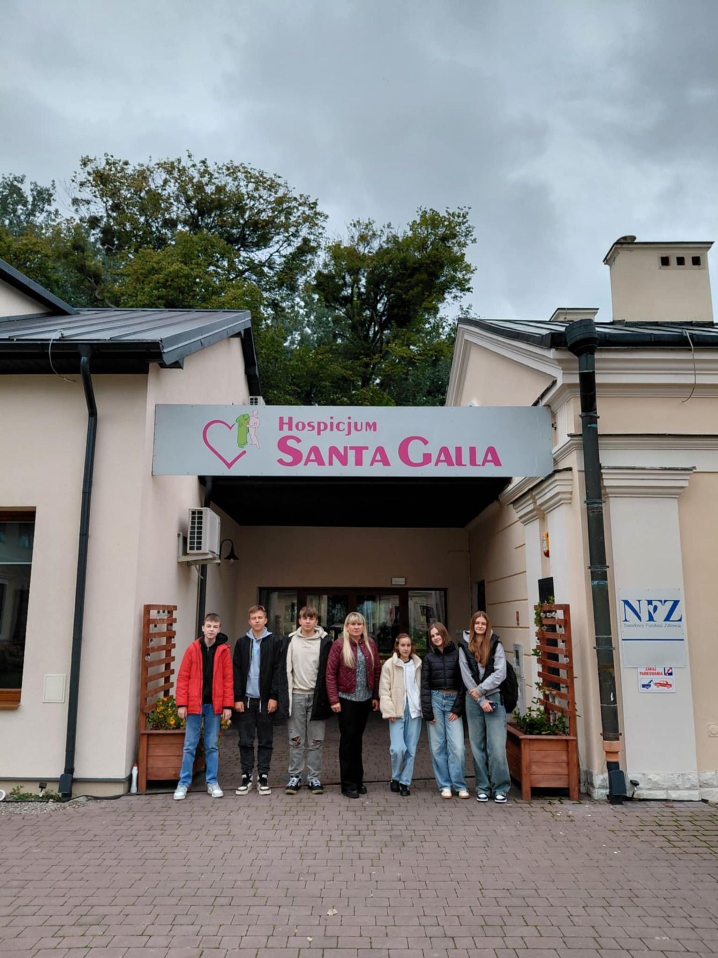W dniu 8 października 2025 roku przed Hospicjum Santa Galla w Łabuńkach Pierwszych odbyło się uroczyste sadzenie żonkili, które rozpoczęło międzynarodową Kampanię Hospicyjną ”Pola Nadziei 2025/2026”. Na inaugurację zaproszeni zostali przedstawiciele władz lokalnych oraz przedstawiciele szkól i przedszkoli, z którymi współpracuje Hospicjum Santa Galla. Tradycyjnie, na początku odbyło się uroczyste powitanie gości, następnie odbyło się sadzenie żonkili, które niezmiennie są symbolem kampanii Pól Nadziei. Naszą szkołę reprezentowali wolontariusze z klasy VII i VIII. Po uroczystym sadzeniu żonkili dla wszystkich gości przygotowano pieczone kiełbaski i herbatkę.