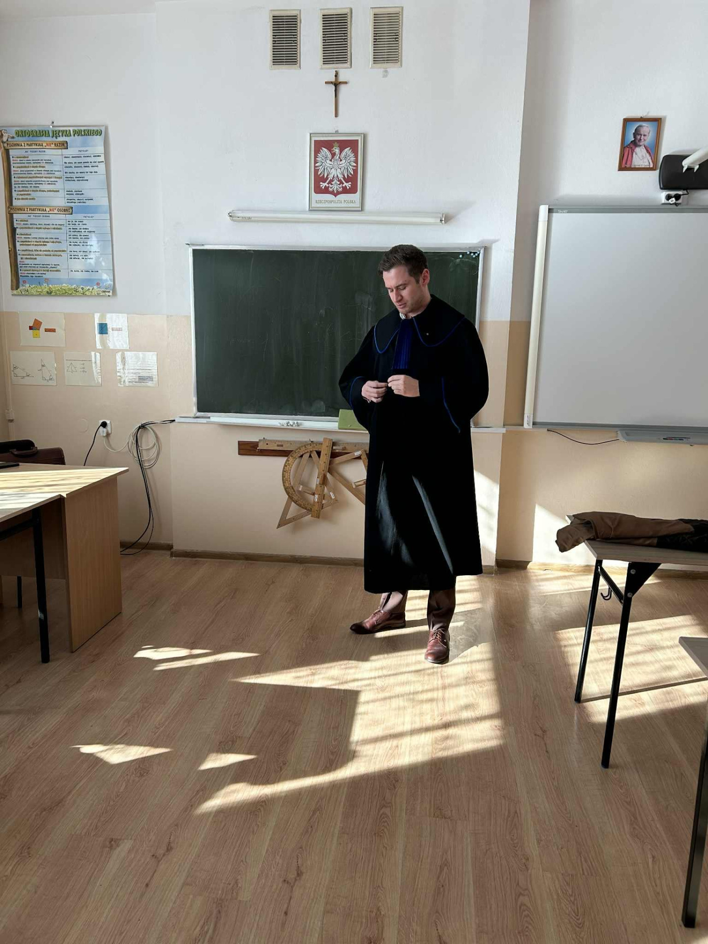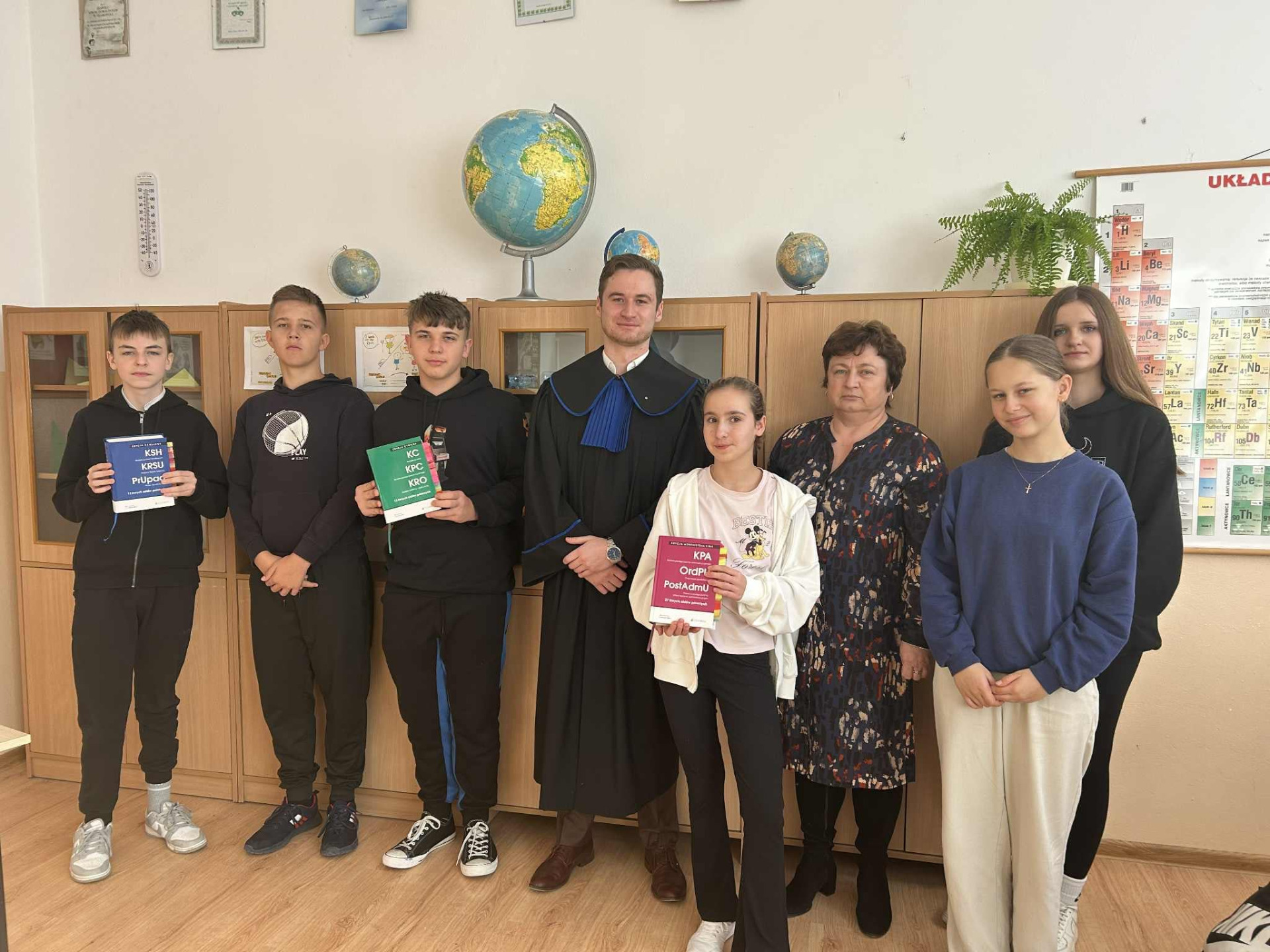 W trakcie spotkania młodzież poznała zasady porządku prawnego i możliwe konsekwencje ich nieprzestrzegania. Uczniowie mogli zadawać pytania, na które otrzymali wyczerpujące odpowiedzi. Atrakcją były także rekwizyty – kodeksy, plansze edukacyjne oraz toga z niebieskim żabotem, którą uczniowie mogli przymierzyć.