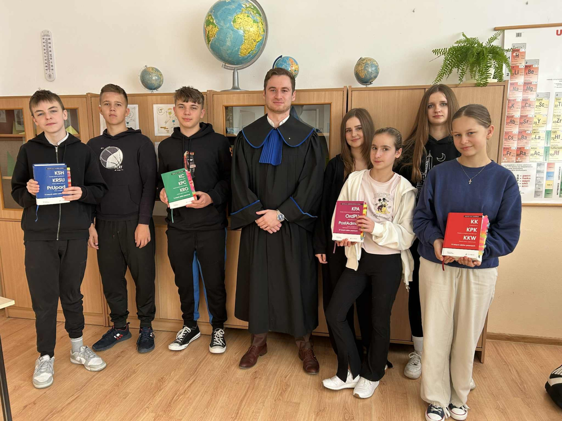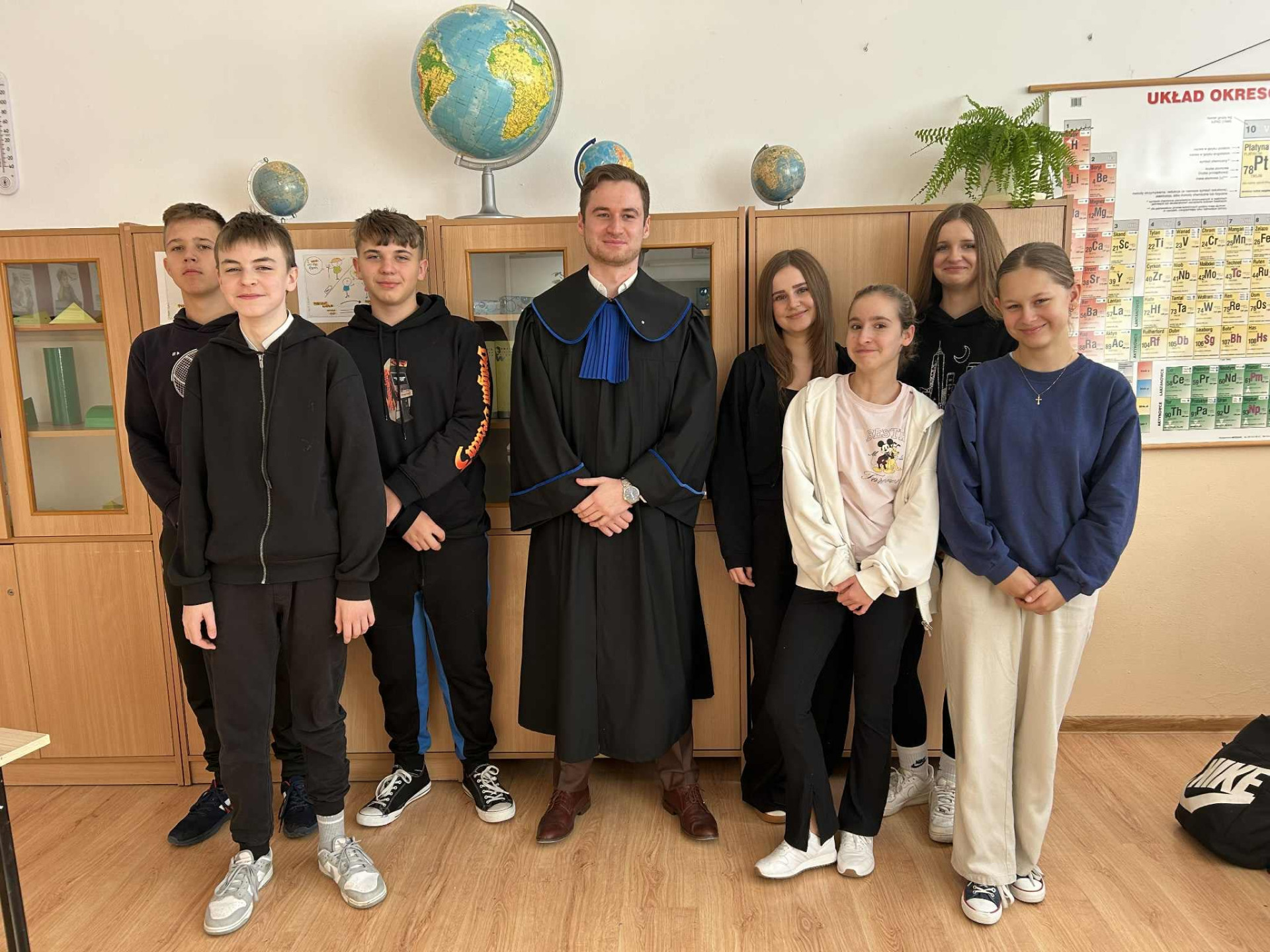 21 października 2025 roku uczniowie klas VII i VIII uczestniczyli w wyjątkowych zajęciach z wychowawcą, których gościem był Pan Radca Prawny Bartłomiej Głuszek.