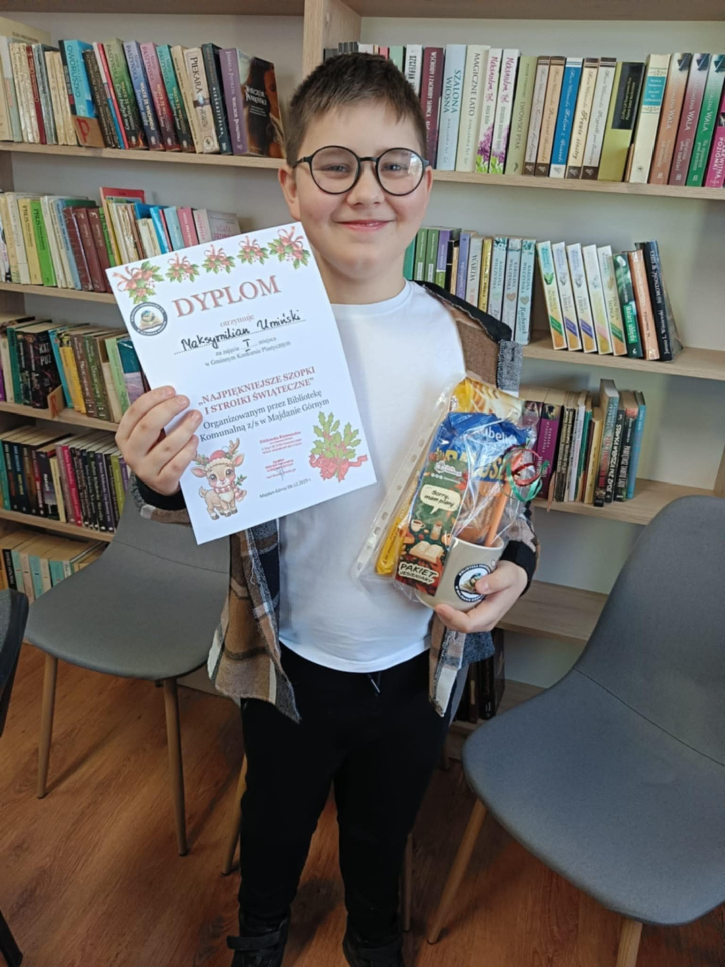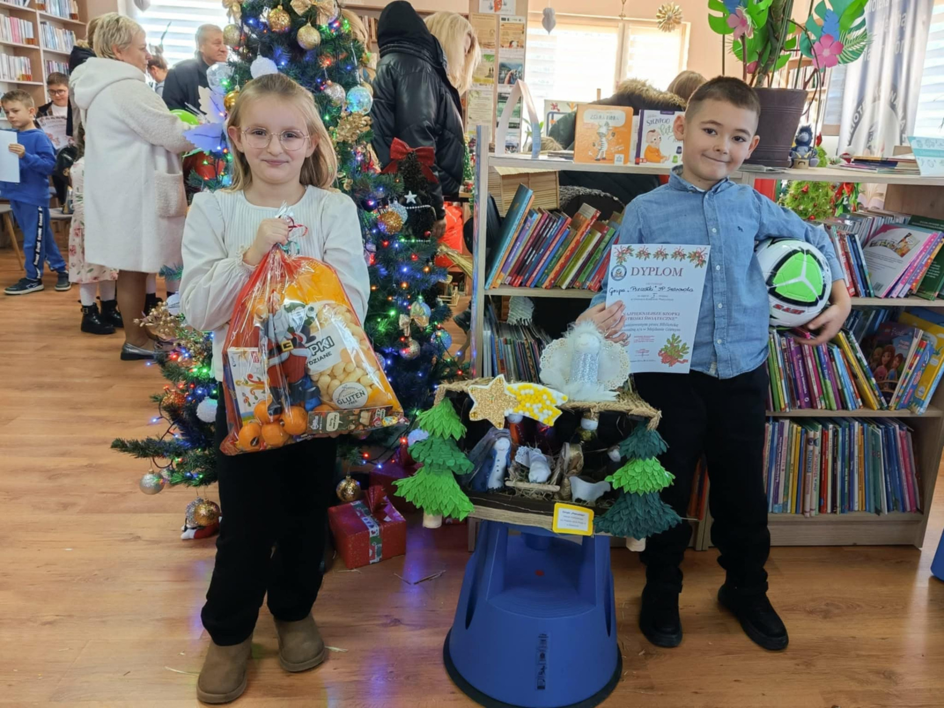 W dniu 8 grudnia 2025 r. w Bibliotece w Majdanie Górnym odbyło się uroczyste rozdanie dyplomów i nagród w Gminnym Konkursie Plastycznym "Najpiękniejsze szopki i stroiki świateczne" 2025 Z radością informujemy, że w tegorocznej edycji konkursu aż 79 prac z całej gminy zachwyciło komisję – a wśród nagrodzonych znaleźli się również uczniowie naszej szkoły w Szarowoli! Z rąk Wójt Gminy Tomaszów Lubelski, Marzeny Czubaj-Gancarz, wszystkie dzieci otrzymały serdeczne podziękowania za piękne i niezwykle pomysłowe prace. Pani Wójt złożyła również najcieplejsze życzenia z okazji zbliżających się Świąt Bożego Narodzenia.