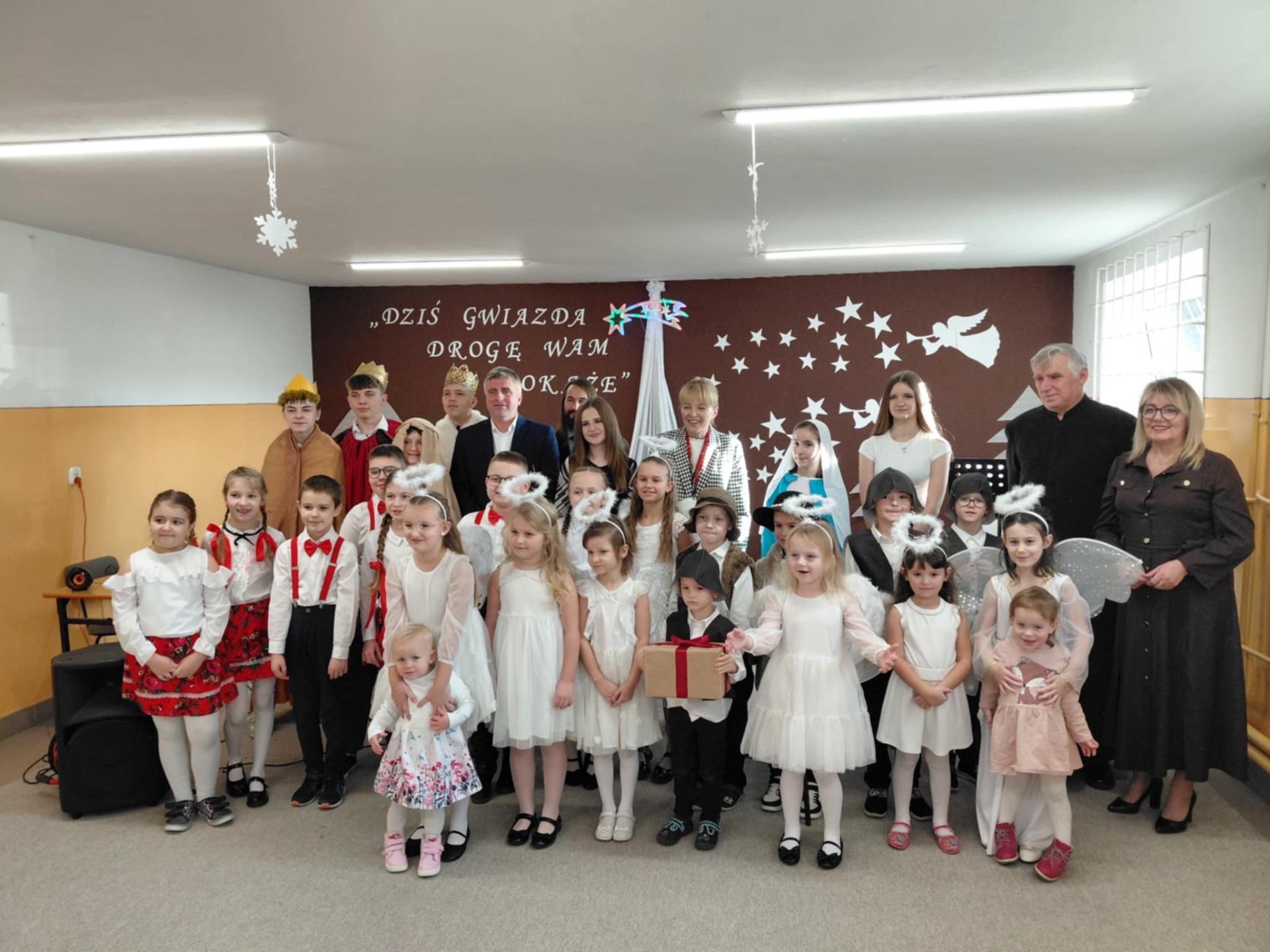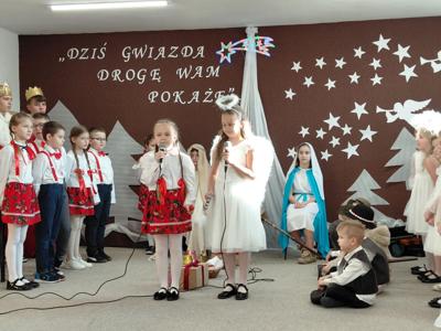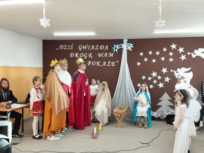 W dniu 19 grudnia 2025 r. w naszej szkole odbyło się uroczyste przedstawienie jasełkowe, przygotowane przez uczniów klas II szkoły podstawowej, uczniów klas V,VII i VIII oraz dzieci z przedszkola. Wydarzenie zgromadziło społeczność szkolną oraz zaproszonych gości i stało się okazją do wspólnego przeżywania atmosfery Świąt Bożego Narodzenia.