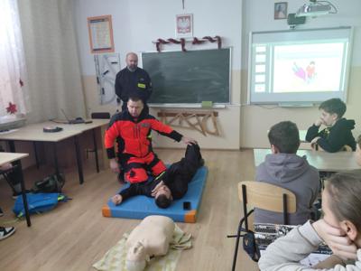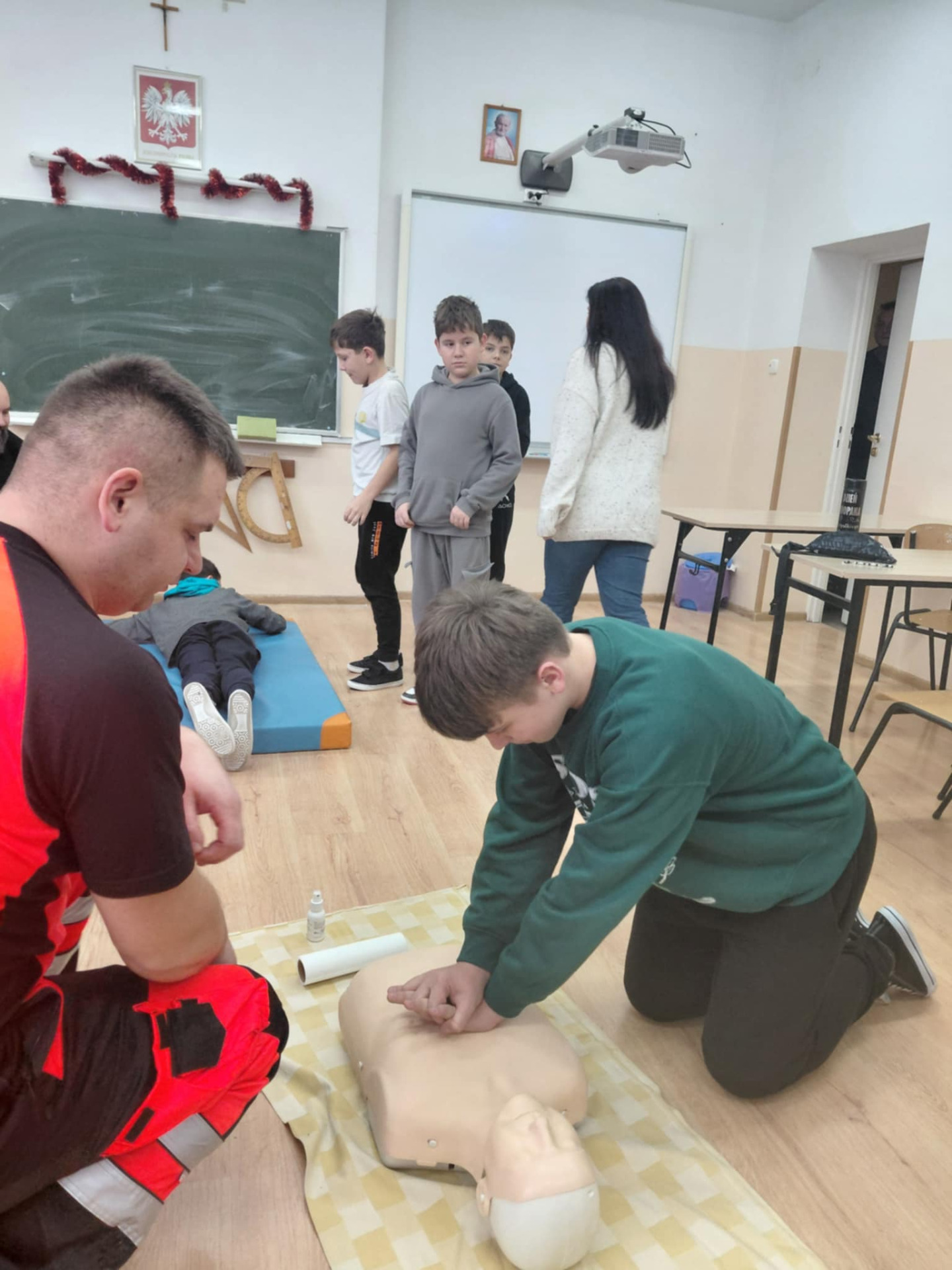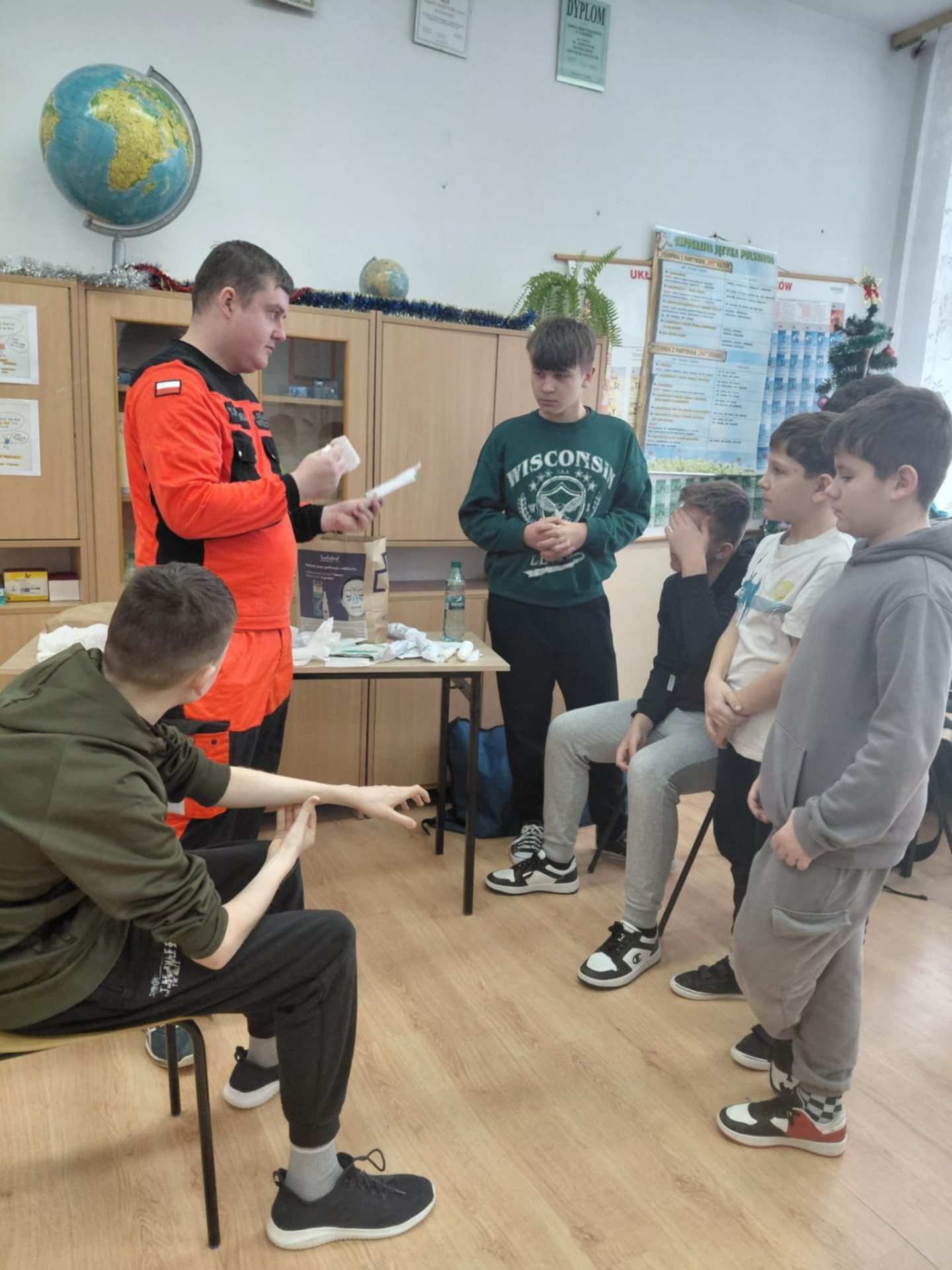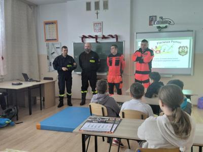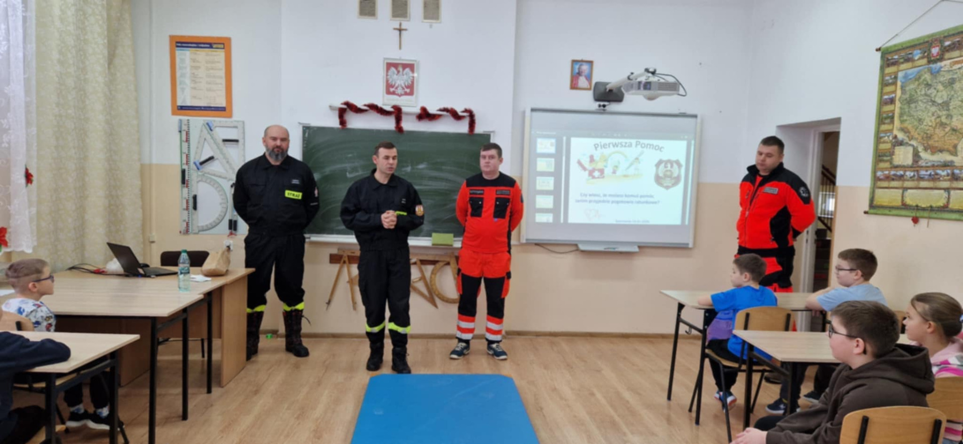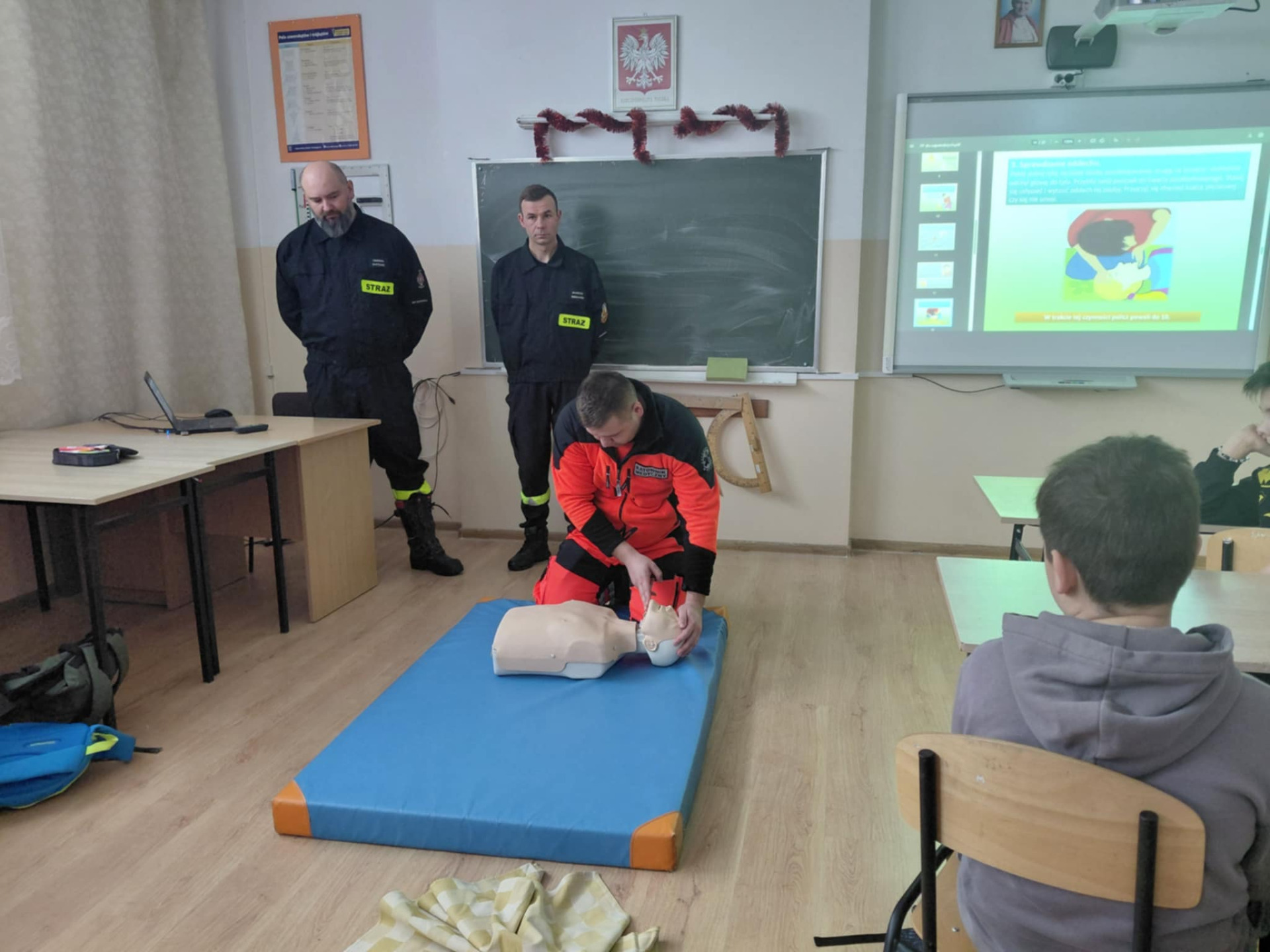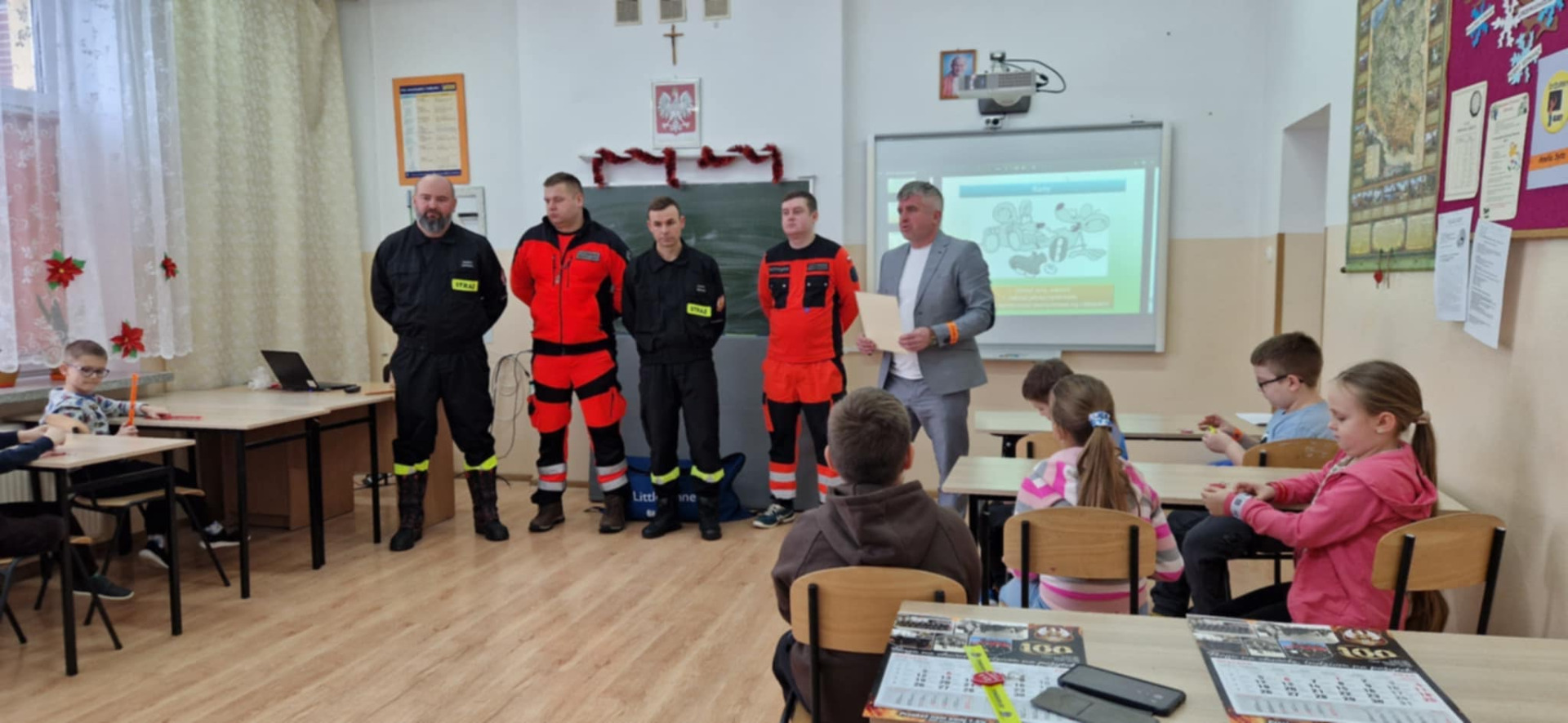Spotkanie przebiegało w miłej i angażującej atmosferze. Było cenną lekcją, która zwiększyła świadomość na temat bezpieczeństwa oraz odpowiedzialnego zachowania w sytuacjach zagrożenia. Serdecznie dziękujemy strażakom i ratownikom medycznym za poświęcony czas oraz przekazanie tak ważnej wiedzy: panu Marcinowi Bednarzowi, Mateuszowi Umińskiemu, Sebastianowi Mosórowi oraz Tomaszowi Piturze.
