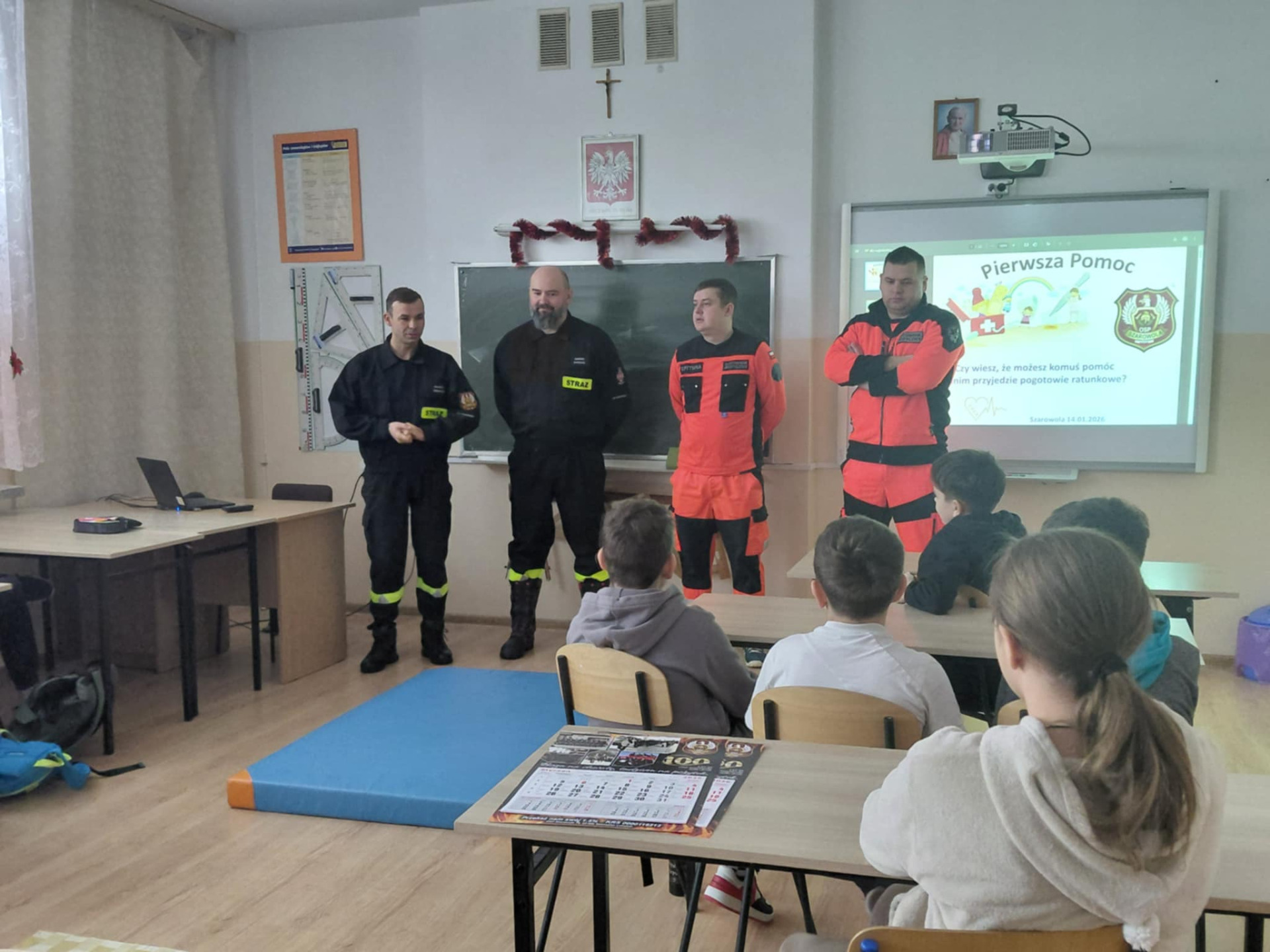 W dniu 14 stycznia 2026 r. w naszej placówce odbyło się spotkanie edukacyjne z przedstawicielami Ochotniczej Straży Pożarnej oraz ratownikami medycznymi – mieszkańcami Szarowoli. Celem wydarzenia było przybliżenie uczestnikom zasad bezpieczeństwa, zapoznanie ich z pracą służb ratunkowych oraz przedstawienie uczniom specyfiki zawodów strażaka i ratownika medycznego.